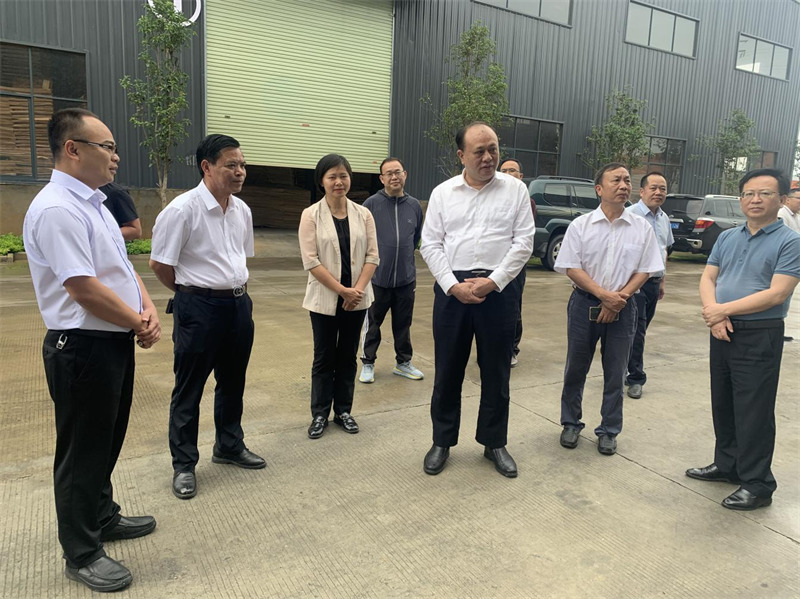 自治区林业局党组书记、局长蔡中平一行人于5月9日到广西百色市千亿木业有限公司开展重点林业产业园区和林产工业项目建设情况调研。